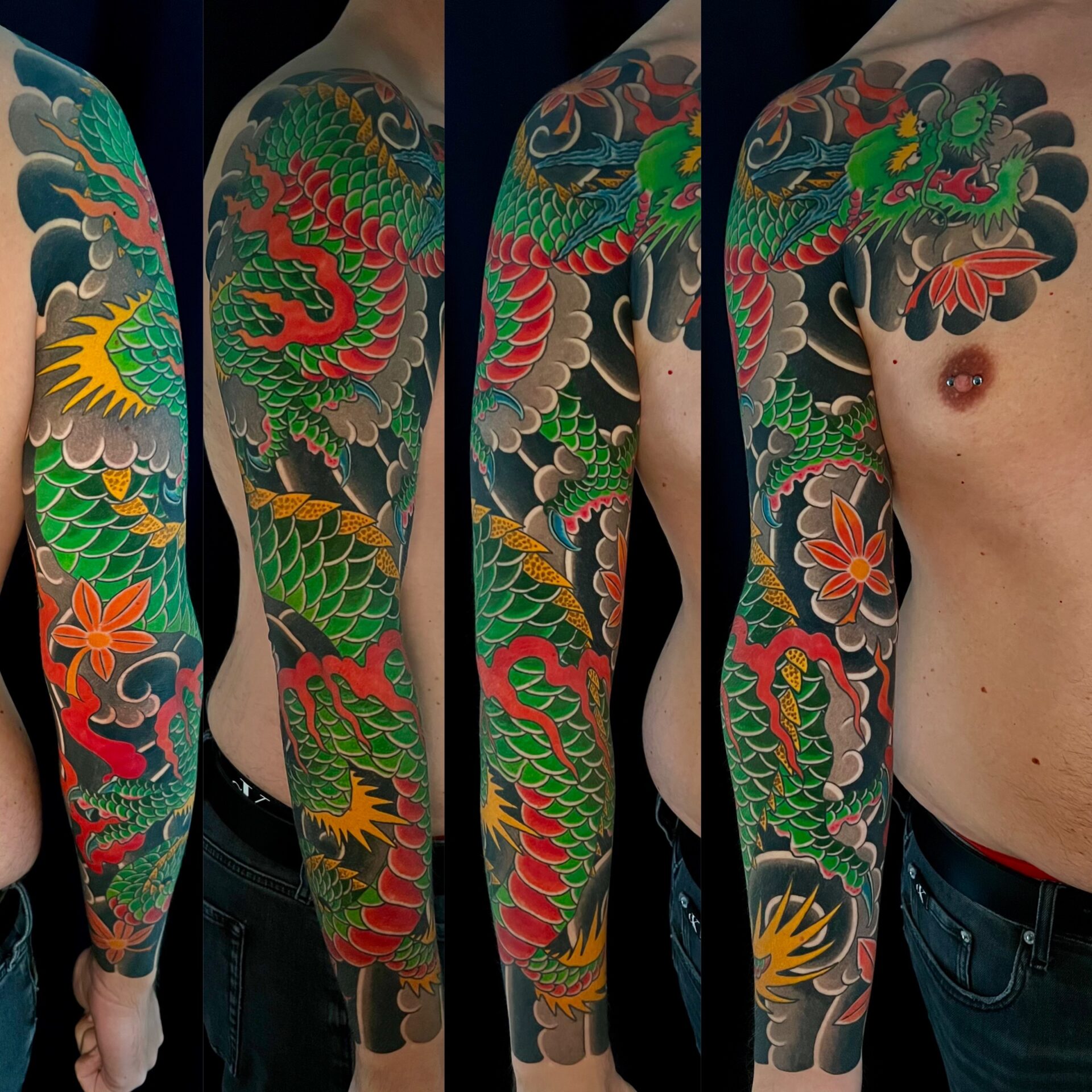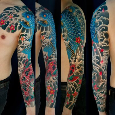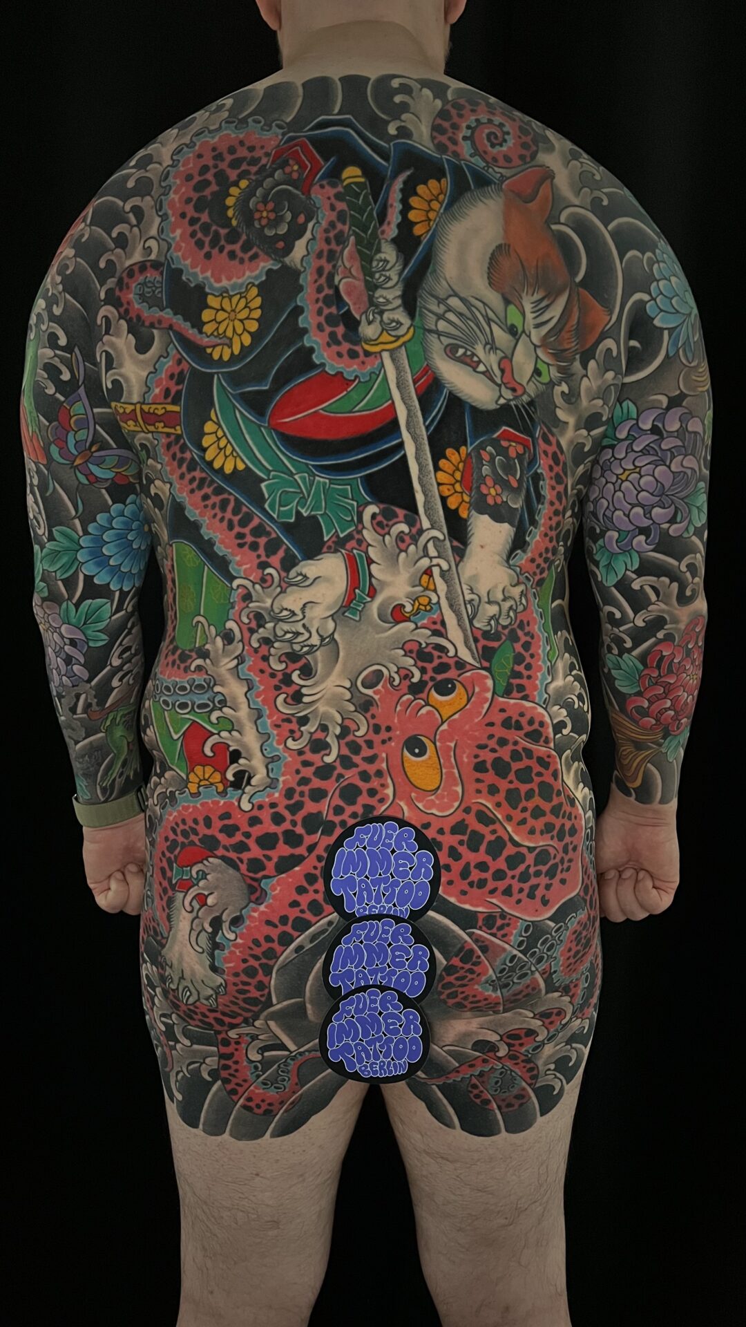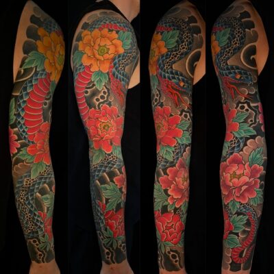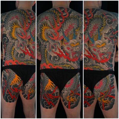Anfangs habe ich, wie in den 90ern üblich versucht, alle Stile abzudecken, wobei ich schon immer gerne ornamentale Arbeiten gemacht habe. An Tribals war in den 90ern kein Mangel! Im Laufe der Zeit habe ich mich dann immer stärker für die japanische Tätowierung interessiert. Die Faszination war schon am Anfang da, aber mir fehlte definitiv das Wissen und technische Können für diese Arbeiten. Inzwischen, nach gut 15 Jahren und mehreren Reisen nach Japan konzentriere ich mich fast ausschließlich auf solche Tätowierungen.
